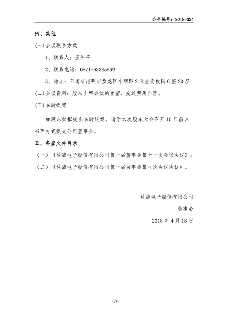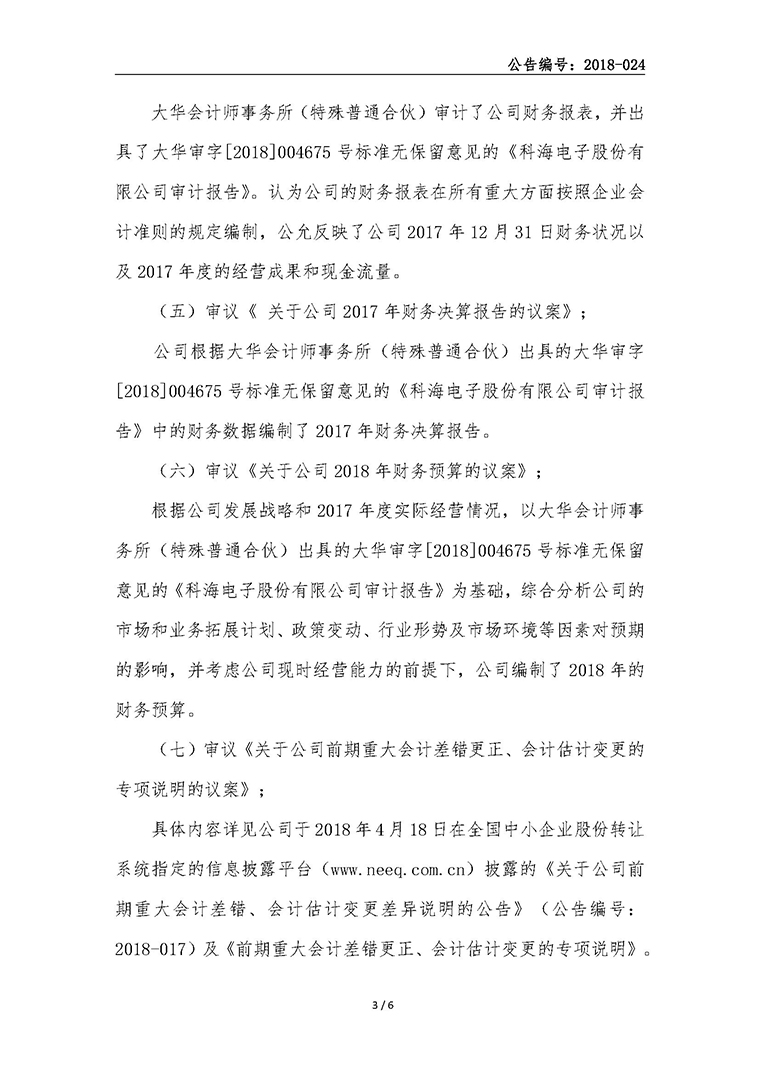 科海電子股份有限公司2017年年度股東大會通知的公告