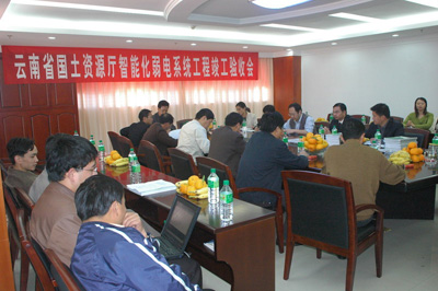 2005年11月17日,由云南科海電子有限公司承建的云南省國土資源廳信息檔案大樓智能弱電系統(tǒng)工程通過了三個月的試運行后正式通過驗收。云南省國土資源廳信息中心、基建處、監(jiān)察處等相關部門領導,云南世博建筑監(jiān)理有限公司等出席了此次驗收會議。