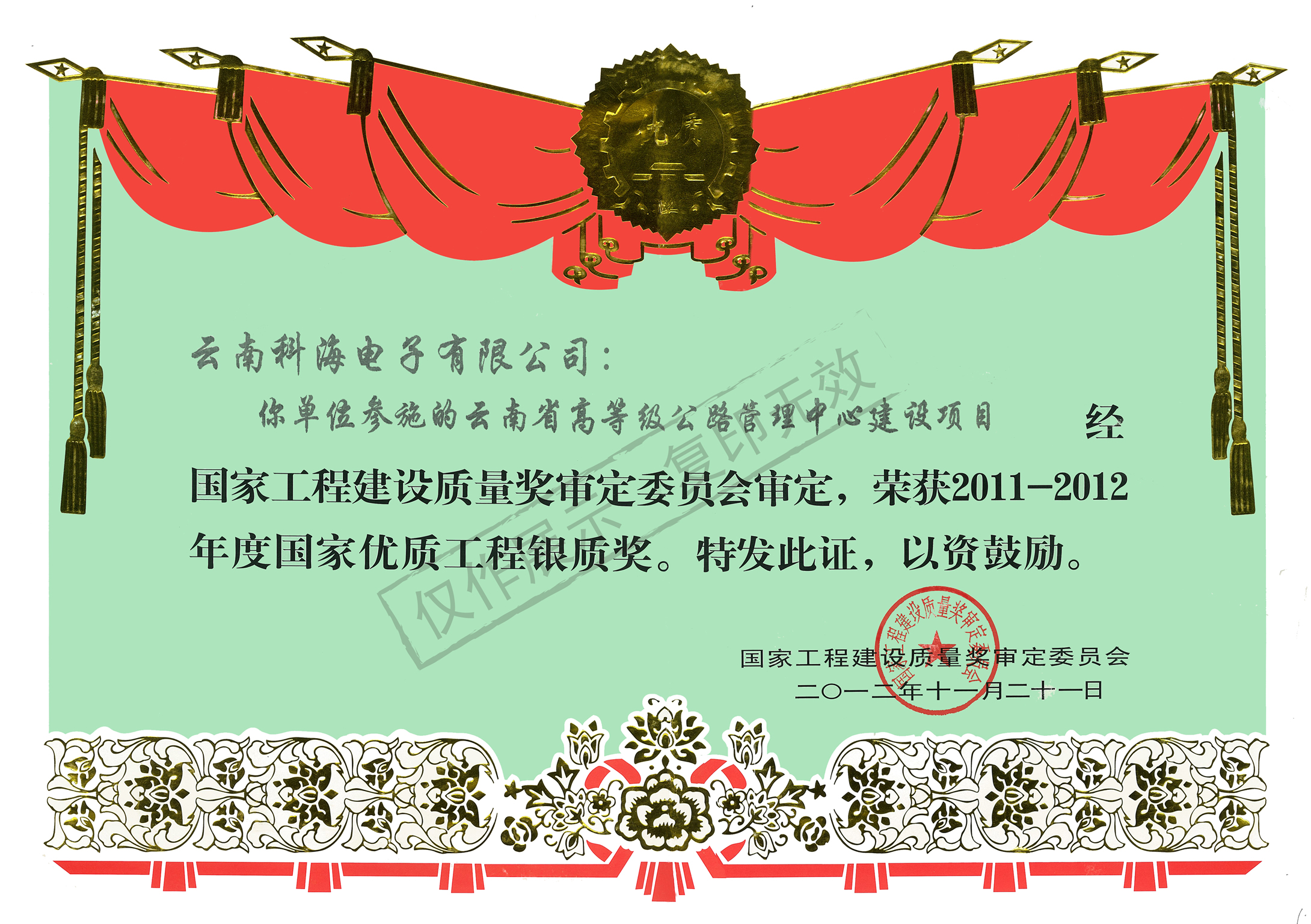 高等級高速公路管理中心國家優質工程銀獎